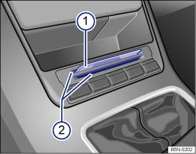 to the subject Both the lower part of the center console ⇒ Fig. 115② and the upper part of the center console ⇒ Fig. 6② may have a card holder to store coins, gas cards ⇒ Fig. 115① , parking receipts or similar items, for example.
