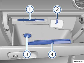 There is a pen holder ⇒ Fig. 117Ⓐ and a notepad holder ⇒ Fig. 117Ⓑ in the glove compartment.