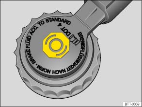 Fig. 136 In engine compartment: Brake fluid reservoir cap
