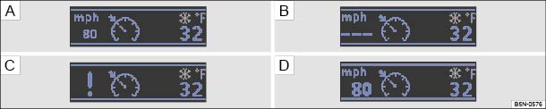 Different cruise control versions are available. The stored speed is shown in the instrument cluster display on some equipment versions.