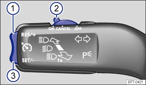 | Switch on cruise control. | Move switch Ⓑ to ![]()