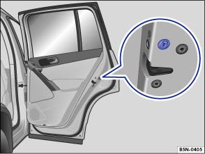 Fig. 180 On the front side of the right rear door: Emergency lock, covered by a rubber seal.