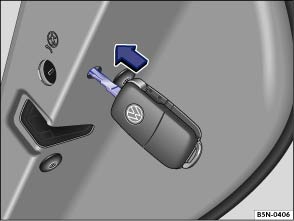 Fig. 181 On the front side of the right rear door: Manual vehicle locking with the key bit in the vehicle key.