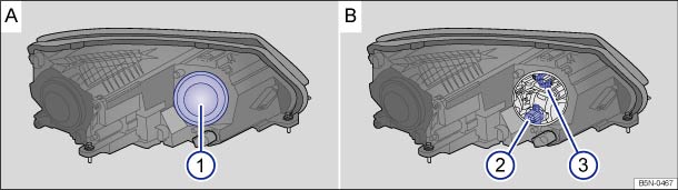 | 1. | Follow the checklist and perform the steps ⇒ Information on light bulb replacement . | |