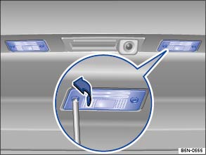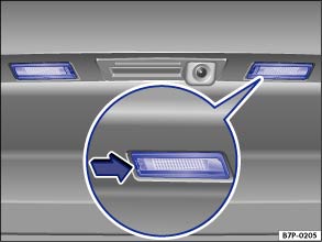 Fig. 209 In the rear hatch: Clamped license plate lamp.