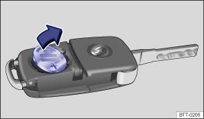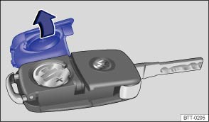 Fig. 21 Remote control vehicle key: Open battery compartment cover.